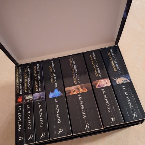 J.K. Rowlingin Harry Potter -kirjasarja suomenkielisinä kovakantisina painoksina. Sarja sisältää useita osia, joissa on värikkäät kannet ja selkeät painatusominaisuudet. Kirjat sopivat nuorille ja aikuisille lukijoille, jotka ovat kiinnostuneita fantasiakirjallisuudesta.
