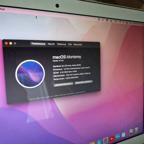 Kohtuukuntoinen kone, asennettu nyt osx Sierra, muut tiedot kuvissa, akku kunnossa, latausyklejä vain 665kpl, virtalähdettä ei ole antaa mukaan, nouto tai postitus.