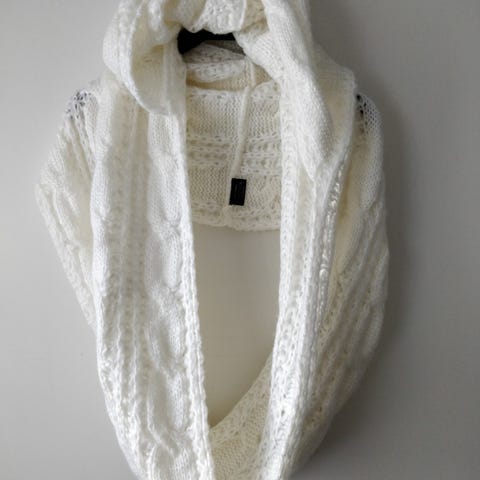 Myydään valkea pitkä neulehuivi. Hinta 5 eur