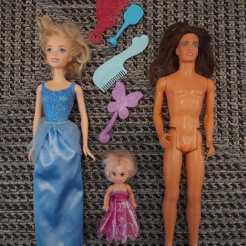 Myydään kolme barbi nukkea. Kaikki ihan siistejä ja ehjiä, mutta hiukset hieman jo takkuiset. Yhteishinta 5e.