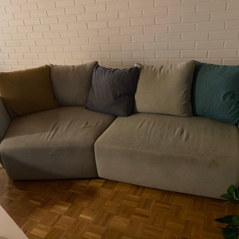Askon sohva ja lepotuoli. Harmaan vihreät. Yhteis hinta 300. Toimitus järjestyy