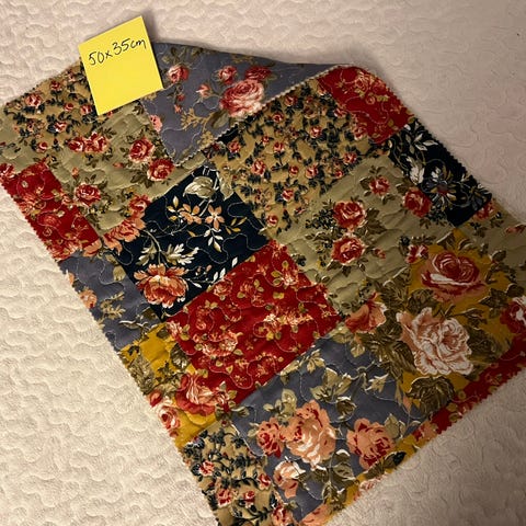 2) Puuvilla, pinta käsitelty. hieman kosteutta hylkiväksi. Tästä oli tarkoitus tehdä pöytäliina kesäjuhlapöytään, mutta juhlille tuli este, jäi tekemättä.