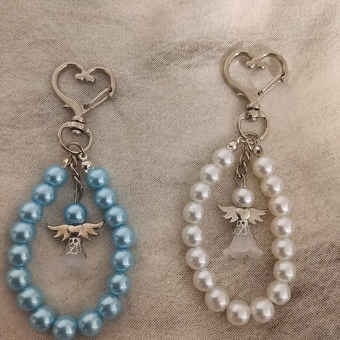 Säihkyvät pallot laukun koristeeksi. Hinta 2 eur