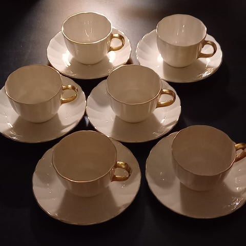 12 kpl Arabian Kultakorva-kahvikuppeja ja leipälautasia kultareunuksella