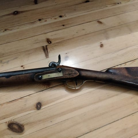 Vanha ja harvinainen Husqvarna mustaruutimusketti. Aseella voi ampua myös haulilatauksia. Vaatii ostoluvan.
