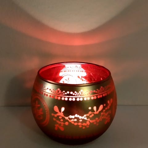 Noin 5 cm korkea lasinen tuikku, Punoksen voi irrottaa.