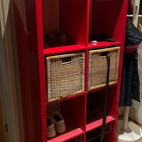 Hyvä kuntoinen hylly, voi sitä käyttää kenkä hyllynä.