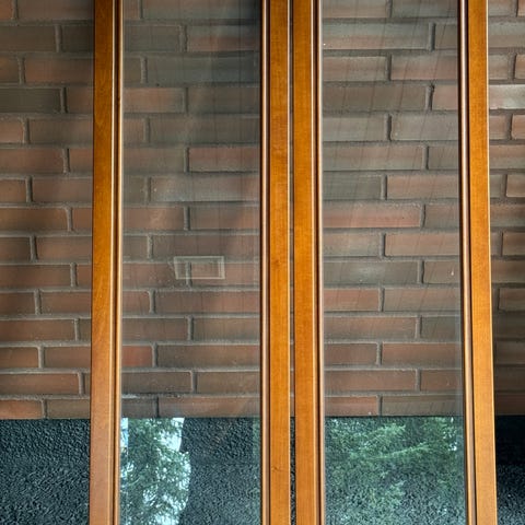 Ensimmäisessä ovista on upouusi. Siihen ei ole koskaan edes asennettu saranoita.
