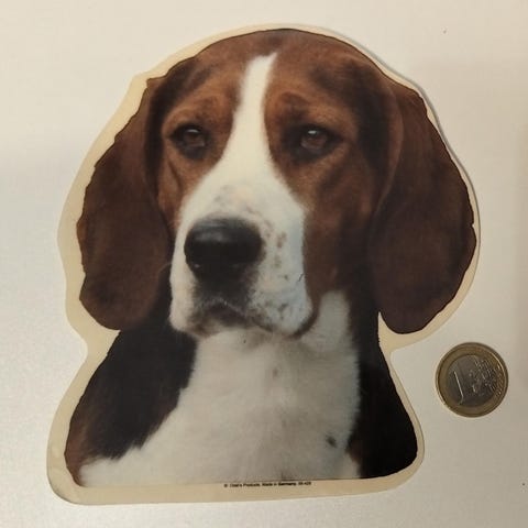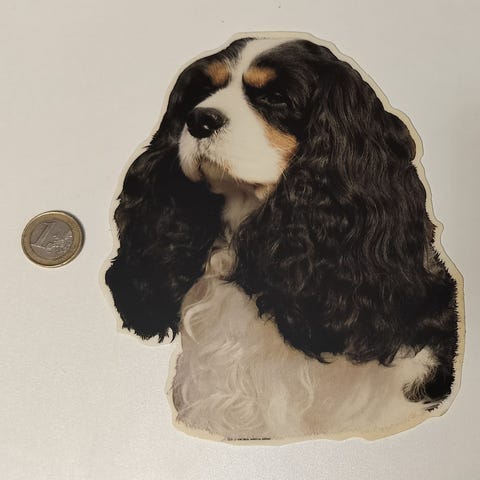 Taakse taustapaperiin kirjoitettu kynällä (ei vaikuta tarran käyttöön) cesky fousek, omaan silmään ennemmin kk saksanseisoja