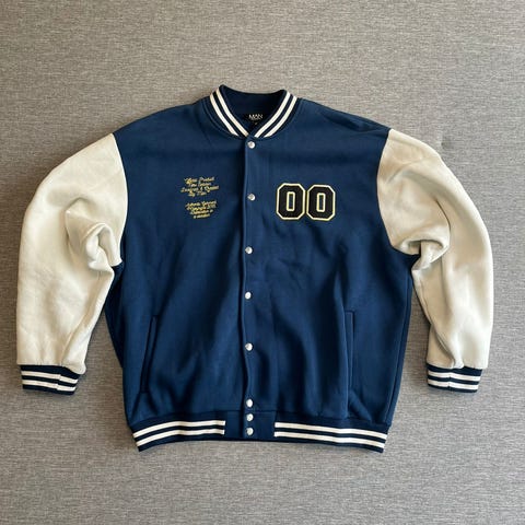 Puna valkoisessa värissä oleva varsity takki!