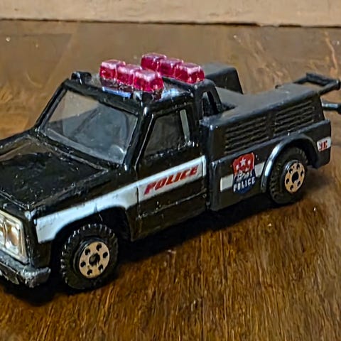 Pienoismallinen poliisiauto, Mallissa on poliisin tunnukset ja tekstit sivuilla, sekä punainen ja musta raita auton kyljissä. Auto on pienoiskoko, soveltuu keräilyyn tai leikkeihin. Lähetyskulut 6€