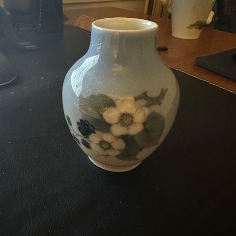Maljakon korkeus 15cm ja leveys 10cm Maljakko on valmistettu keramiikasta ja siinä on käsinmaalattu kukkakuosi. Sopii sisustukseen tai koristekäyttöön.