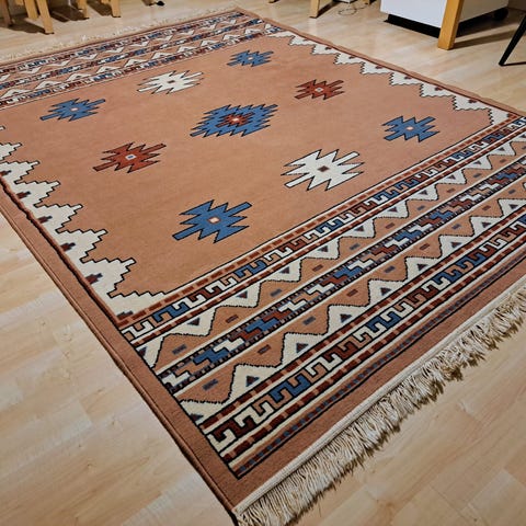 Todella kaunis, turkkilainen käsinsolmittu Yağcıbedir-matto. Sekä kude, että loimi luonnonvillaa. Matto edustaa aitoa paimentolaiskäsityöperinnettä länsi-Turkista.