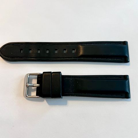 Myydään käyttämättömäksi jäänyt päätymuotoiltu kumiranneke rannekelloon. Lug 20mm.