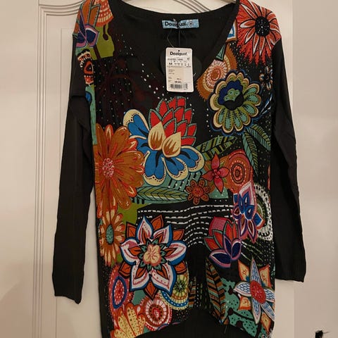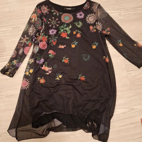Myydään Desigual-paita. Läpikuultava kevyesti laskeutuva kangas, puolipitkät hihat.