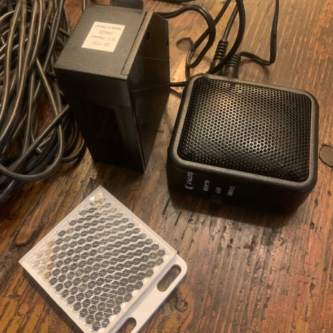 Sisääntulo hälytin vaikka myymälän ovelle tai mihin vaan. Toimiva ja hyvässä kunnossa. Kennon ja muuntajan välinen kaapeli 10m