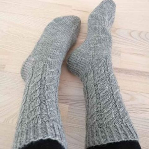 Tummanpunaiset (kuvissa hieman vaaleampi sävy) joustavat ja lämpimät Nako Pure Sock Plus (75% villa, 27% polyamidi) villalangasta neulotut sukat.