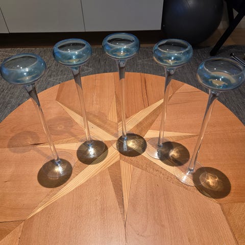 Alkuperäisessä pakkauksessa käyttämättömät lasiset kynttilänjalat. Pakkaus ei sisällä kynttilöitä.