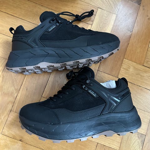 Myydään Icepeakin ulkoilukengät / retkeilykengät. Käyttämättä jääneet kengät, joissa AWS waterproof pinnoite (vastannee goretexiä). Irrotettava muotoiltu sisäpohjallisen, jonka mitta on n. 25,5cm, kengän kokomerkintä 39. Matalavartinen kenkä, jossa kiertää vahvike nilkan kohdalla merkinnällä Ankle protection.