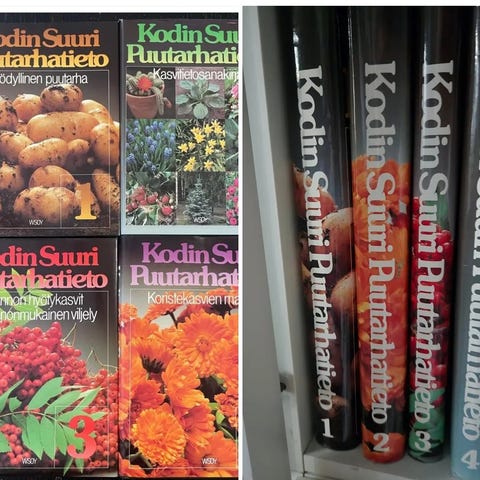 Kirjapaketti sisältää useita puutarhakirjoja, jotka käsittelevät piha-alueiden suunnittelua, materiaalivalintoja kuten kivi, tiili, puu ja kasvit, sekä viherrakentamista ja viherhuoneiden suunnittelua. Kirjat tarjoavat ohjeita ja ideoita viihtyisän puutarhan rakentamiseen ja hoitoon. Minulle tarpeettomia.