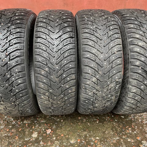 Talvirenkaat, Nokian hakkapeliitta 8. Pintaa 5-6mm. Nastat tallella eikä katkenneita. Sijaitsee Salossa. Tarvittaessa kulkeutuu Turkuun.