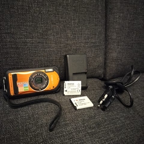 Tarjolla hyväkuntoinen Pentax Zoom 90 -pokkarikamera suojapussilla. Kamera on ollut vuosia käyttämättä ja vaatii uuden pariston. Kamerassa on 38-90mm zoom-objektiivi.