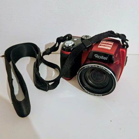 Tarjolla hyväkuntoinen Rollei Prego 90 -pokkarikamera suojapussilla. Kamera on ollut vuosia käyttämättä ja vaatii uuden pariston.