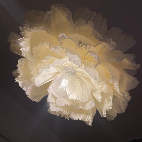 Myynnissä OKRAN värinen Valonpisara valaisin. Leveys 60 cm korkeus 30-40 cm
