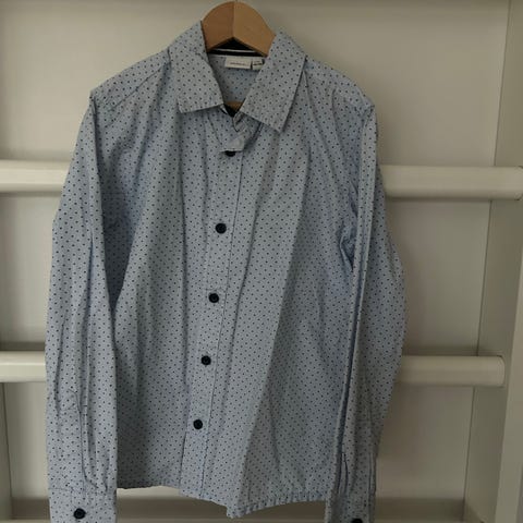 Tummansininen vakosamettinen kauluspaita 100% puuvillaa. Name it - merkkiä, koko 134-140. Sopii hyvin talven juhliin!