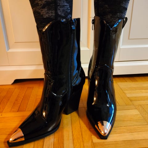Uudet itselle vähän pienet lakeribootsit, koko 40, sisämitta noin 25 cm, eli vastaa kokoa 38-39 sopii märilläkin keleillä, myös vahvojen villasukkien kanssa.