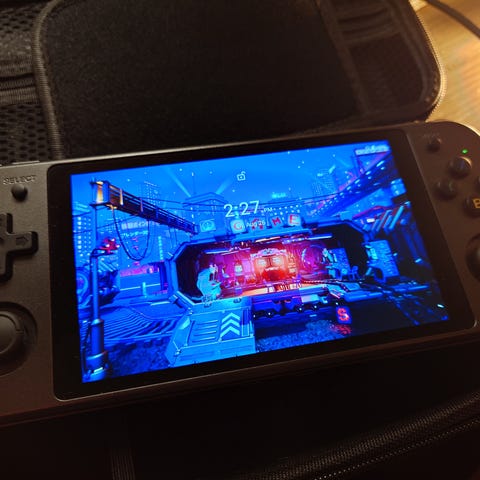 Myynnissä vähän käytetty Anbernic RG 351P käsikonsoli.