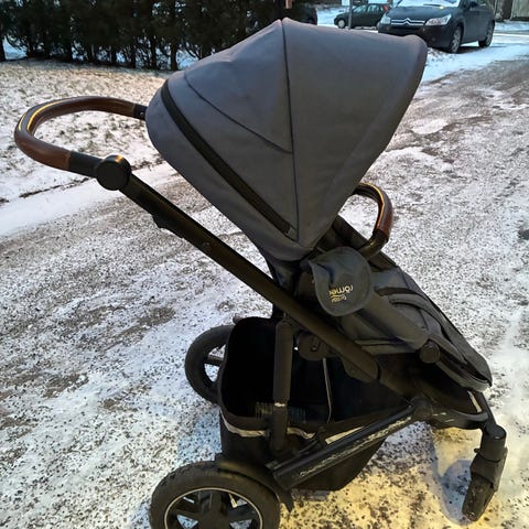 Näppärät rattaat, menee kasaan, kulkee sutjakkaasti kaupungissa kääntyvien eturenkaiden vuoksi. On 5-pistevyöt, on jalkasuoja (ei kuvassa), siisti käytetty kunto ja sisällä säilytetyt.