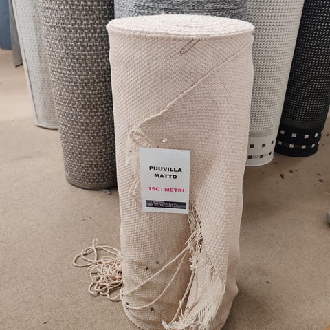 Siisti ja hyväkuntoinen matto. Joulunpunainen pohja, luonnonväri, valkoinen ja musta. Leveys 68.5 cm ja pituus 143 cm.