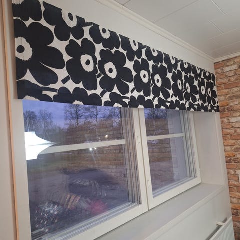 Käytetyt, pestyt. Liilassa kukassa ” linkousraitoja, pohja ei myöskään aivan vitivalkoinen. Punertaa hieman. Ei mielestäni hajua/ tuoksua. Pesuaine mitä milloinkin. Joku ommellut, käänteet. Ei Tankokujaa. Nipsuin pidetty. Kivat verhot vielä vuosiksi.