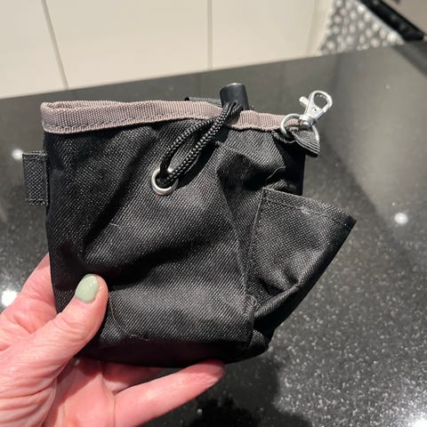 Nyörillä suljettava makupalapussi.