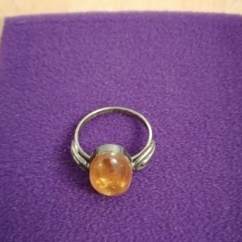 Hopeasormus meripihkakivellä. Koko noin 21. Nouto tai lähetys.