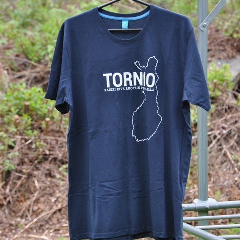 Myydään miesten Tornio-kotiseutupaita, jossa lukee "Tornio, kaikki kiva Ruotsin puolella". T-paidan väri on sininen, tummansininen, laivastonsininen, navy. Koko on M. Paita on täysin käyttämätön.