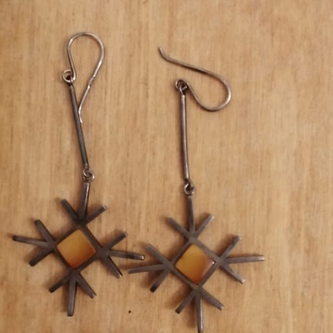 Kuvan mukaiset nappikorvakorut meripihkakivellä. Oletettavasti hopeaa, mutta en löytänyt leimoja. Nouto tai lähetys.