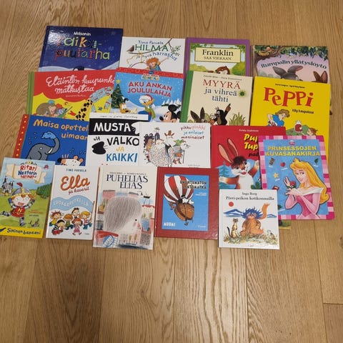 Myynnissä lasten kirjoja 5-7 euroa kappale. Voit kysyä minulta hinnasta:)