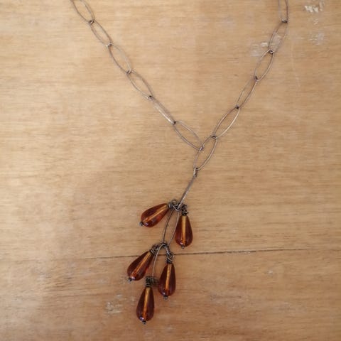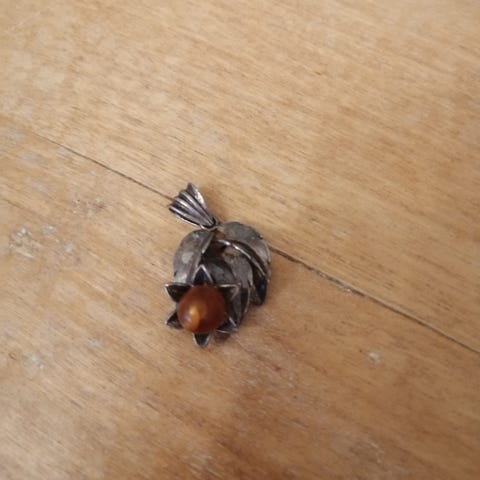 Kaunis meripihkakiviriipus, ketju on oletettavasti hopeaa, sen saa kaupan päälle. Nouto tai lähetys.