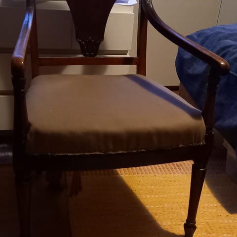 Myydään vanha tuoli, toinen käsinoja hiukan haljennut.