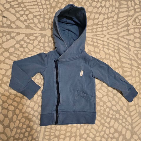 Käytetty mutta hyväkuntoinen huppari. Pientä tummentumaa hihoista ja kaula-aukosta löytyy.