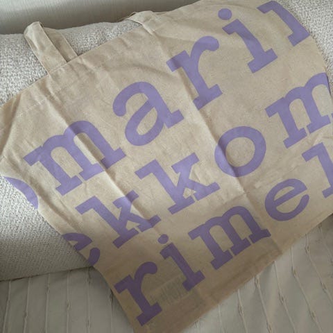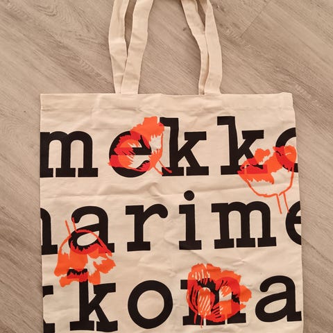 Kaunis Marimekon logokassi. Tämä on uusi ja käyttämätön, vain kannettu ostokset kotiin.