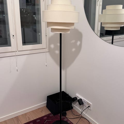 Myytävänä PHILADELPHIA-lattiavalaisin - yksinkertaisen ja elegantin kaunis valaisin. Sintsikankaisessa varjostimessa ei ole mitään ylimääräistä. Valkoisen varjostimen halkaisija on 50 cm. Valaisimen korkeus on 156 cm ja lampun kanta E27. Jalka harjattu teräs. Johto läpinäkyvä. Valaisin Grönlund. Kunto erinomainen. Hinta 150e (ovh. 319e)