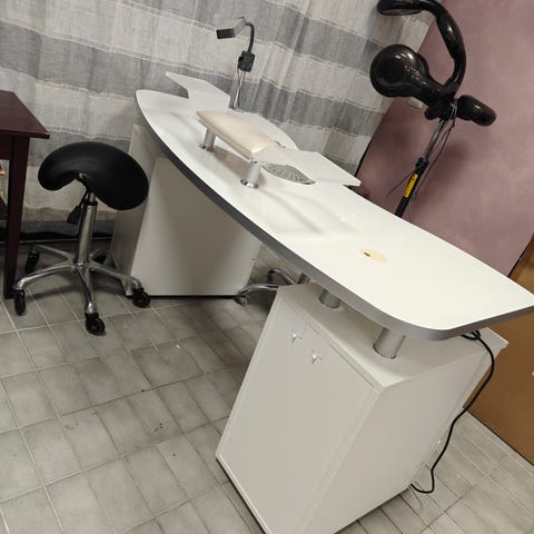 Jonkun verran käytetty kynsipöytä imurilla. Lamppu ei kuulu mukaan. Päällystetty dc-fixillä+jämillä 😅 , alkuperäinen valkoinen pinta muistin mukaan ok siisti. Imuri toimii, mutta ei oo mikään raketti.