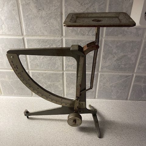 Myydään vanha hyväkuntoinen kirjevaaka, 0-1000g. Korkeus noin 27cm. Merkki Hema,made in GDR.