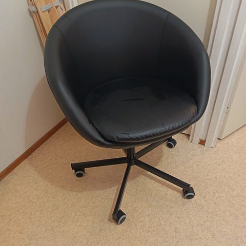 Ikean Skruvsta työtuoli valkoista tekonahkaa. Tuolin mekanismit toimivat.