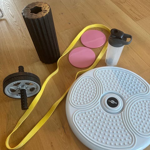 Puntit:2,1 0,5kg painosta sekä jalkapaino 1 kg .Tasapainolauta iso