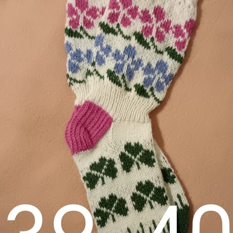 Käsin tehty villasukat 75 %villaa ja 25 %polyamiidia. Vahvistettu kantapää. 40 asteen pesu. Nouto tai postitus. Otan tilauksia.