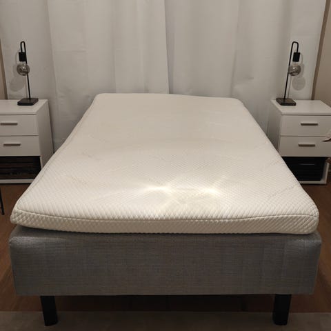 Mukana ei tule sälepohjaa. Meillä ollut tässä käytössä kaksi erillistä sälepohjaa. Sopivia saa esimerkiksi Jyskistä.